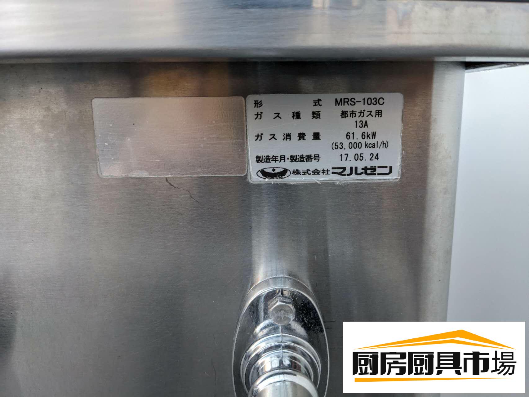 【中古品】番号KT177◆マルゼン 中華レンジ MRS-103C 都市ガス用 2017年 幅1750×奥行850×高さ730動作問題なし☆ 【製品概要】 メーカー: マルゼン 型式:MRS-103C 年式 :2017年製 ガス種類: 都市ガス用 13A ガス消費量 :61.6kW(53000kcal/h) |